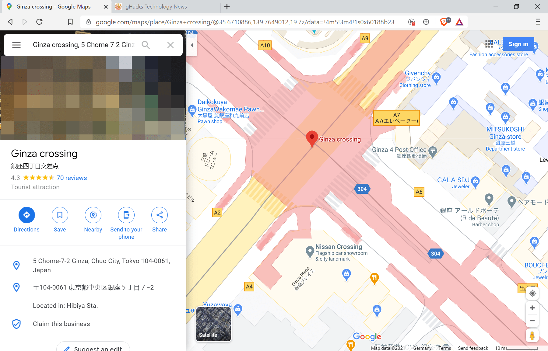 下面的截圖演示了這些地點的人行橫道現是如何在谷歌地圖上顯示的: