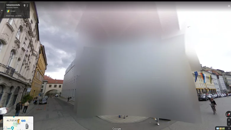 由于隱私法和德國幾十年來對隱私的普遍態度,德國大部分地區都沒有被納入街景。Google繪制了20個城市的地圖,遇到了很多麻煩,這使得德國至今基本上沒有街景。這座建筑已經不再模糊,但在慕尼黑曾有一段時間,街景圖上沒有它。