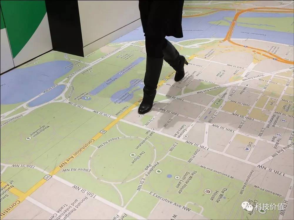 Google在華盛頓的辦公室有一張地圖,卻被鋪設在地板上。這是一張包含美國國會大廈的地圖(當然是谷歌地圖)。